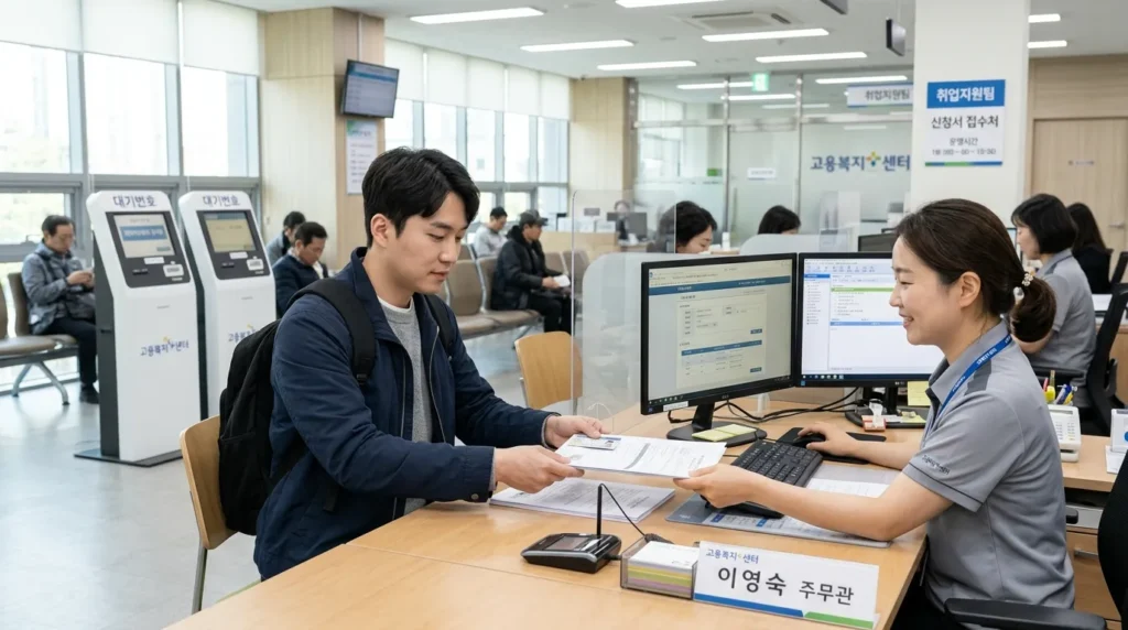 | STEP 4 | 고용복지플러스센터 방문 | 수급자격 신청서 제출 + 증빙 서류 지참 |
